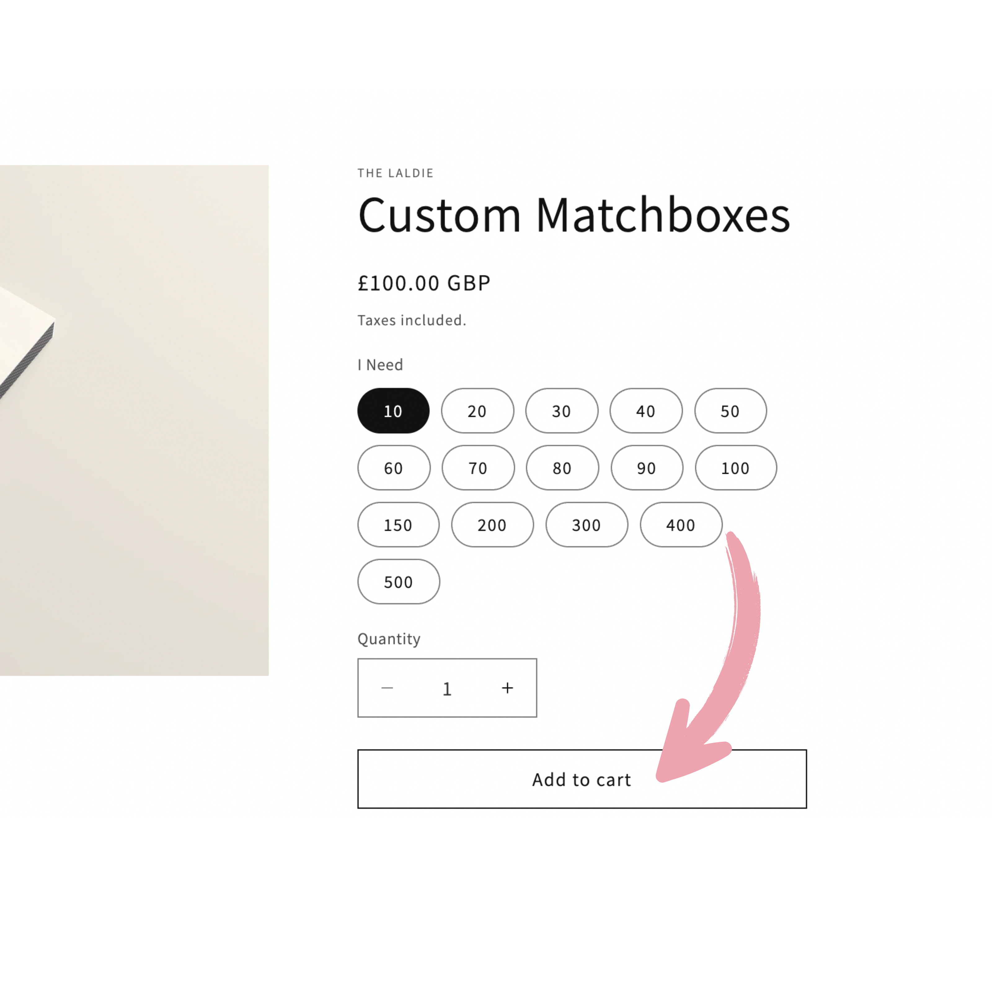First, we kindly ask you to decide how many matchboxes you need for your order. Then, please select your desired quantity!